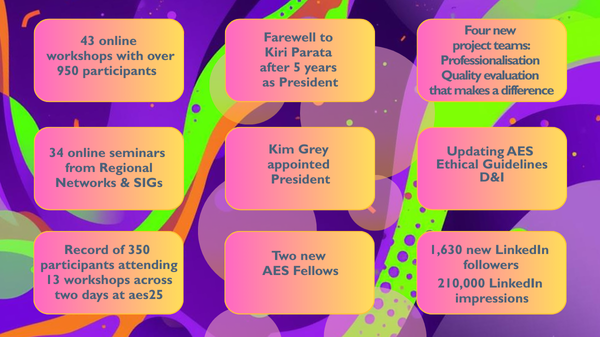 Thank you for showing up on LinkedIn, amplifying each other’s work, sparking conversation and helping AES grow its voice. In 2025, LinkedIn proved to be a powerful hub for connection, with more than 1,630 new followers and over 210,000 impressions across our content. Engagement hit a high point in September, generating more than 52,000 impressions in that month alone.